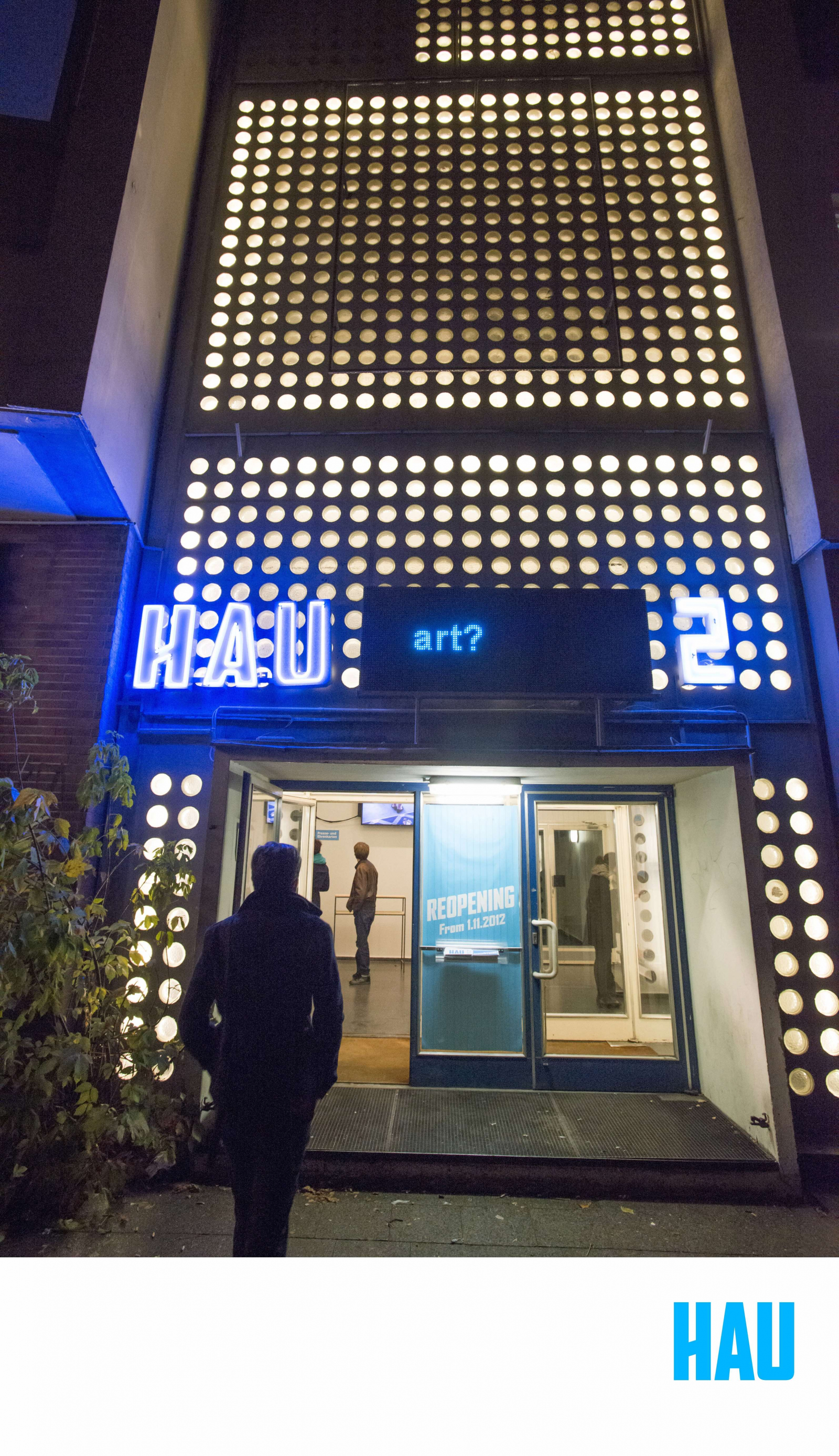 Das HAU Hebbel am Ufer ist ein internationales Produktionshaus und präsentiert aktuelle künstlerische Positionen an der Schnittstelle von Theater, Tanz und Performance. Darüber hinaus sind Musik, Bildende Kunst und theoretische Diskursveranstaltungen feste Bestandteile des Programms. Ohne festes Ensemble werden hier internationale Koproduktionen, Festivals und Projekte der Berliner und der (inter)nationalen Theater- und Tanzszene entwickelt und gezeigt.