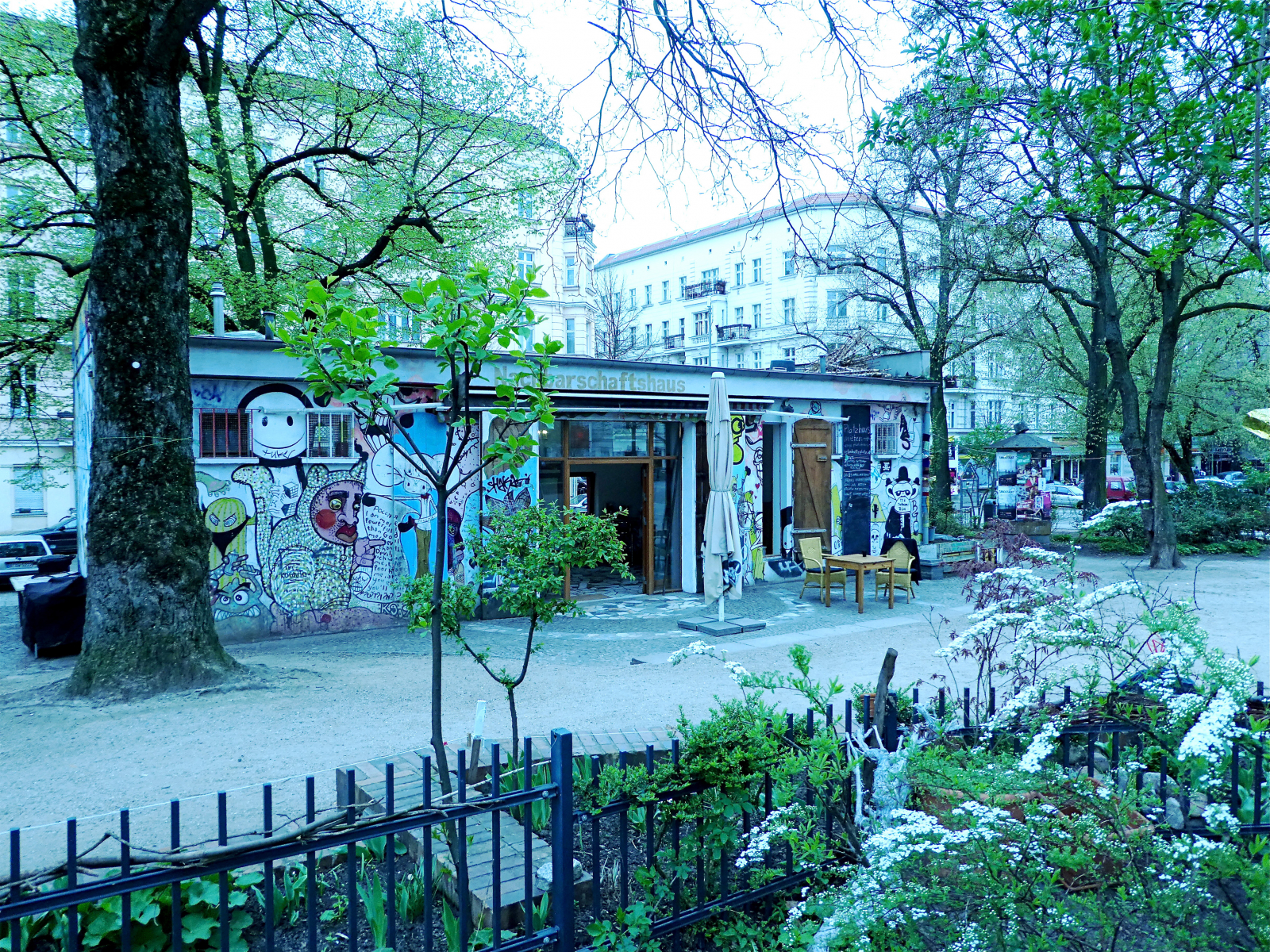 Am Rande und inmitten des Helmholtzplatzes steht das Platzhaus; ein ehemaliges Toilettenhäuschen, das sich zu einem nachbarschaftlichen Ort im Kiez entwickelt hat, an dem auch Menschen mit geringem sozio-ökonomischem Potential gesellschaftliche Teilhabe und -gabe leben und erleben können. Ein Haus, dessen Kontur durch Zeichnungen der letzten Jahrzehnte beschrieben wurde und wird, und dessen Architektur im Sinne von ZU-SAMMEN-UND-AUS-EIN-ANDER-SETZUNGEN beweglich bleibt.